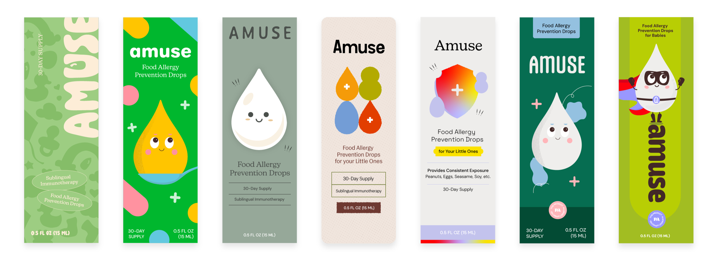 This packaging project was created for Amuse by Prairie Allergy, a product designed to help train young immune systems and reduce the risk of food allergies. My goal was to create a clean, approachable design that builds trust with parents while maintaining a fun, kid-friendly feel.